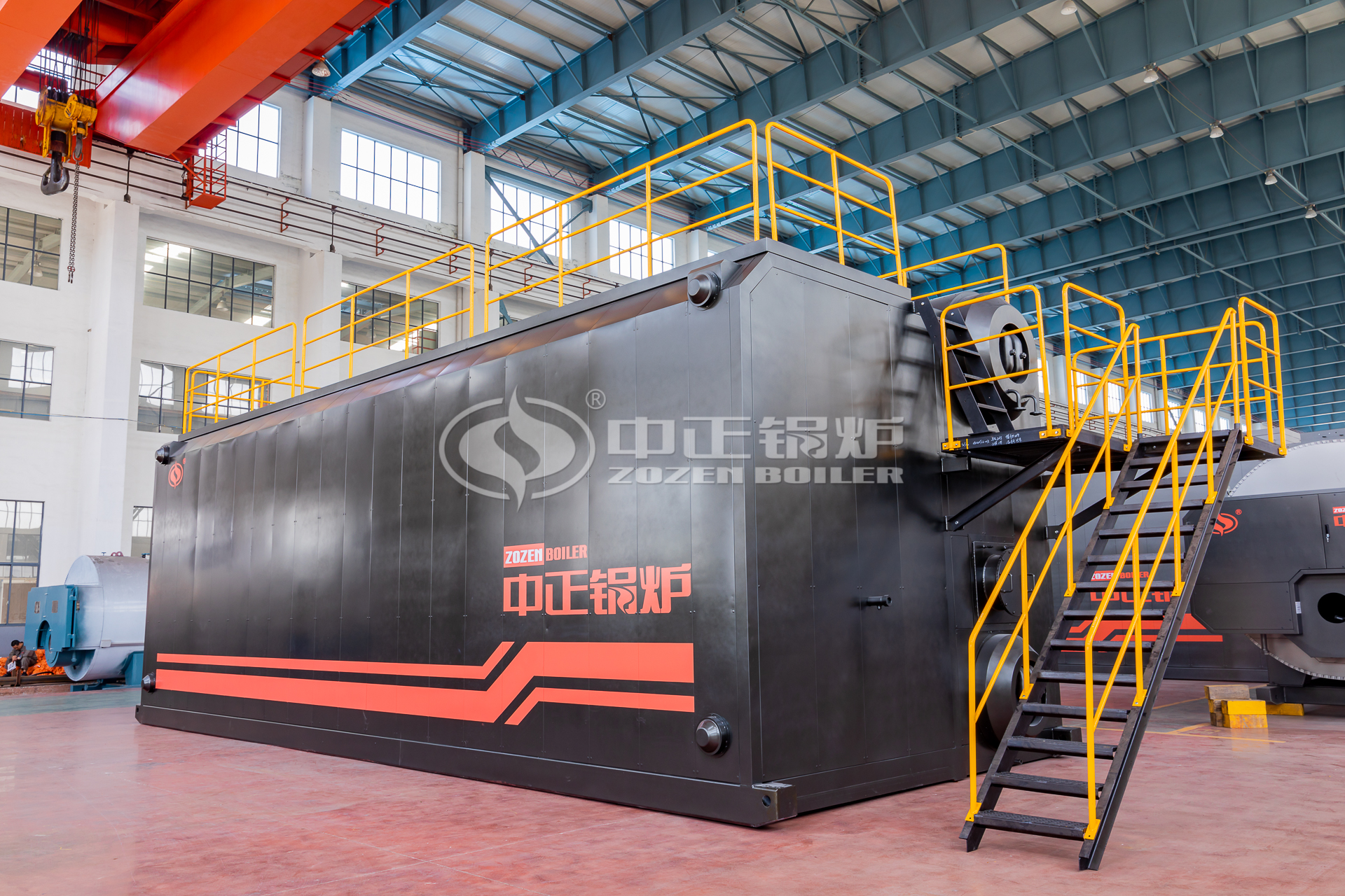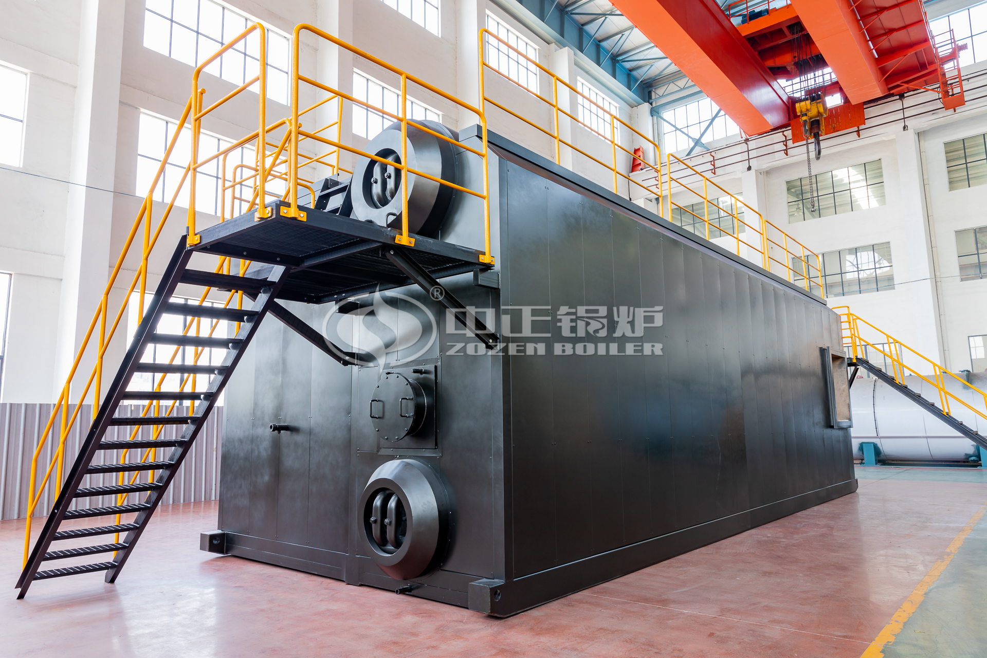 SZS boiler body is the structure of longitudinal double drums and D-type chamber combustion. The furnace is on right side and the convection tube bundle are on left side. The flexible supports of boiler are in the middle and two ends of the lower drum, and it can secure the whole boiler body to expand sideways. There are narrow-space membrane cooling tube walls on the four sides of furnace. The left membrane wall makes the furnace and the convection tube bundle separated. The rear of convection tube bundle is a kind of tube-decreasing and staggered structure, and the front is an aligned structure. The flue gas generated from furnace combustion flows from the rear outlet of furnace into the end of combustion chamber, convection tube bundle area, and then turns from the front-left of furnace to the spiral finned tube economizer, and next flows into smoke duct and chimney and finally exhausts into atmosphere.