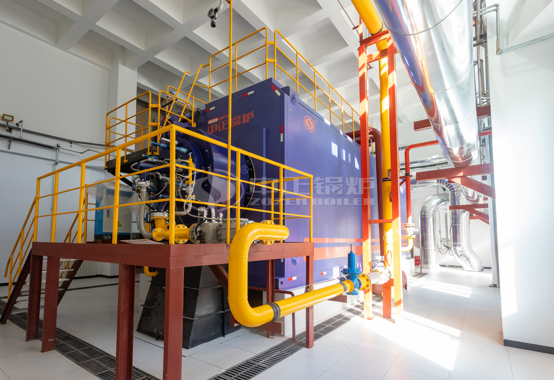 SZS boiler body is the structure of longitudinal double drums and D-type chamber combustion. The furnace is on right side and the convection tube bundle are on left side. The flexible supports of boiler are in the middle and two ends of the lower drum, and it can secure the whole boiler body to expand sideways. There are narrow-space membrane cooling tube walls on the four sides of furnace. The left membrane wall makes the furnace and the convection tube bundle separated. The rear of convection tube bundle is a kind of tube-decreasing and staggered structure, and the front is an aligned structure. The flue gas generated from furnace combustion flows from the rear outlet of furnace into the end of combustion chamber, convection tube bundle area, and then turns from the front-left of furnace to the spiral finned tube economizer, and next flows into smoke duct and chimney and finally exhausts into atmosphere.
