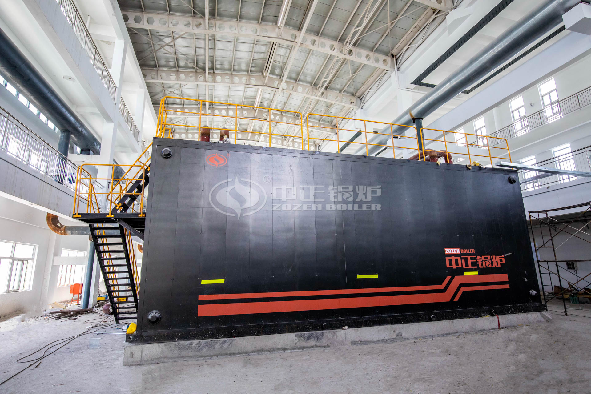 SZS boiler body is the structure of longitudinal double drums and D-type chamber combustion. The furnace is on right side and the convection tube bundle are on left side. The flexible supports of boiler are in the middle and two ends of the lower drum, and it can secure the whole boiler body to expand sideways. There are narrow-space membrane cooling tube walls on the four sides of furnace. The left membrane wall makes the furnace and the convection tube bundle separated. The rear of convection tube bundle is a kind of tube-decreasing and staggered structure, and the front is an aligned structure. The flue gas generated from furnace combustion flows from the rear outlet of furnace into the end of combustion chamber, convection tube bundle area, and then turns from the front-left of furnace to the spiral finned tube economizer, and next flows into smoke duct and chimney and finally exhausts into atmosphere.