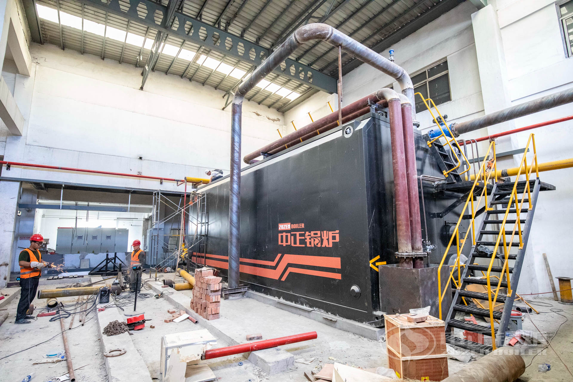 SZS boiler body is the structure of longitudinal double drums and D-type chamber combustion. The furnace is on right side and the convection tube bundle are on left side. The flexible supports of boiler are in the middle and two ends of the lower drum, and it can secure the whole boiler body to expand sideways. There are narrow-space membrane cooling tube walls on the four sides of furnace. The left membrane wall makes the furnace and the convection tube bundle separated. The rear of convection tube bundle is a kind of tube-decreasing and staggered structure, and the front is an aligned structure. The flue gas generated from furnace combustion flows from the rear outlet of furnace into the end of combustion chamber, convection tube bundle area, and then turns from the front-left of furnace to the spiral finned tube economizer, and next flows into smoke duct and chimney and finally exhausts into atmosphere.