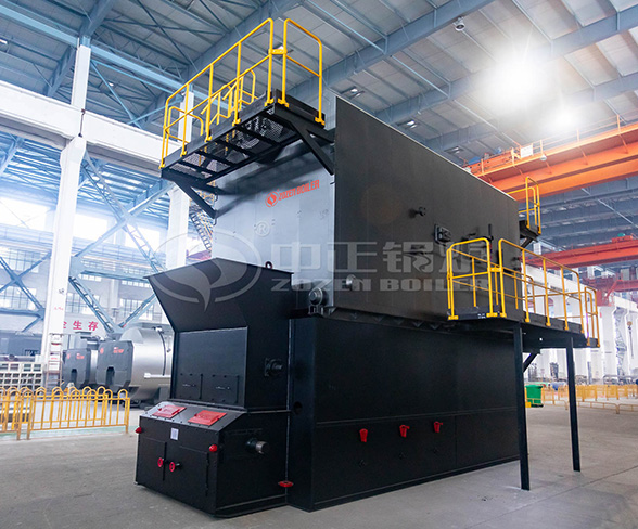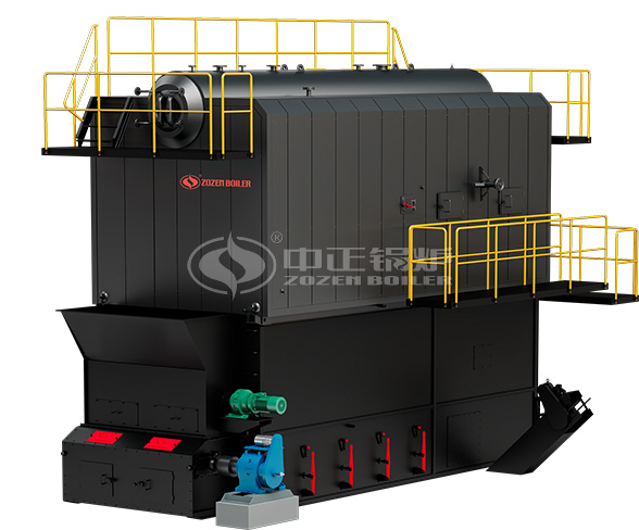 The SZL series biomass-fired boiler is a chain grate water tube boiler designed by ZOZEN Boiler based on advanced international technology and experience. It features a horizontal double-drum and vertical layout structure. The boiler consists of two major parts: the upper part is the heating surface and the lower part is the combustion equipment. The front of the boiler body is surrounded by water-cooled walls. The upper part is connected with drum and the lower part is connected with the header to form the combustion chamber, absorbing the radiation heat of the furnace. At the rear end, a convection tube bundle is arranged between the upper and lower drums. After the fuel is burned in the furnace, the high-temperature flue gas is swept across the convection tube bundle for the secondary return, then guided to a separately arranged economizer and finally enters the dust collector before being discharged through the chimney.