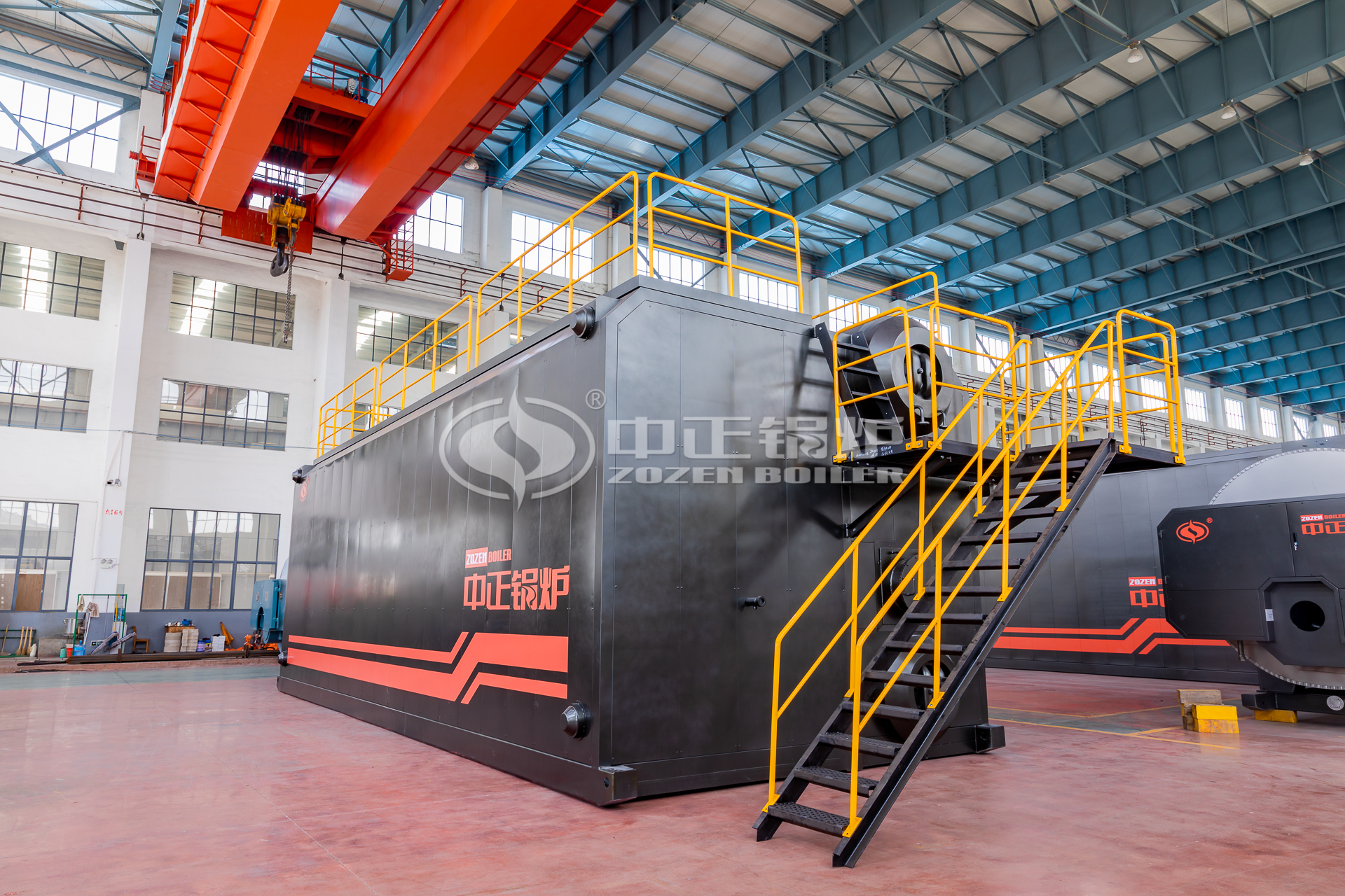 SZS boiler body is the structure of longitudinal double drums and D-type chamber combustion. The furnace is on right side and the convection tube bundle are on left side. The flexible supports of boiler are in the middle and two ends of the lower drum, and it can secure the whole boiler body to expand sideways. There are narrow-space membrane cooling tube walls on the four sides of furnace. The left membrane wall makes the furnace and the convection tube bundle separated. The rear of convection tube bundle is a kind of tube-decreasing and staggered structure, and the front is an aligned structure. The flue gas generated from furnace combustion flows from the rear outlet of furnace into the end of combustion chamber, convection tube bundle area, and then turns from the front-left of furnace to the spiral finned tube economizer, and next flows into smoke duct and chimney and finally exhausts into atmosphere.