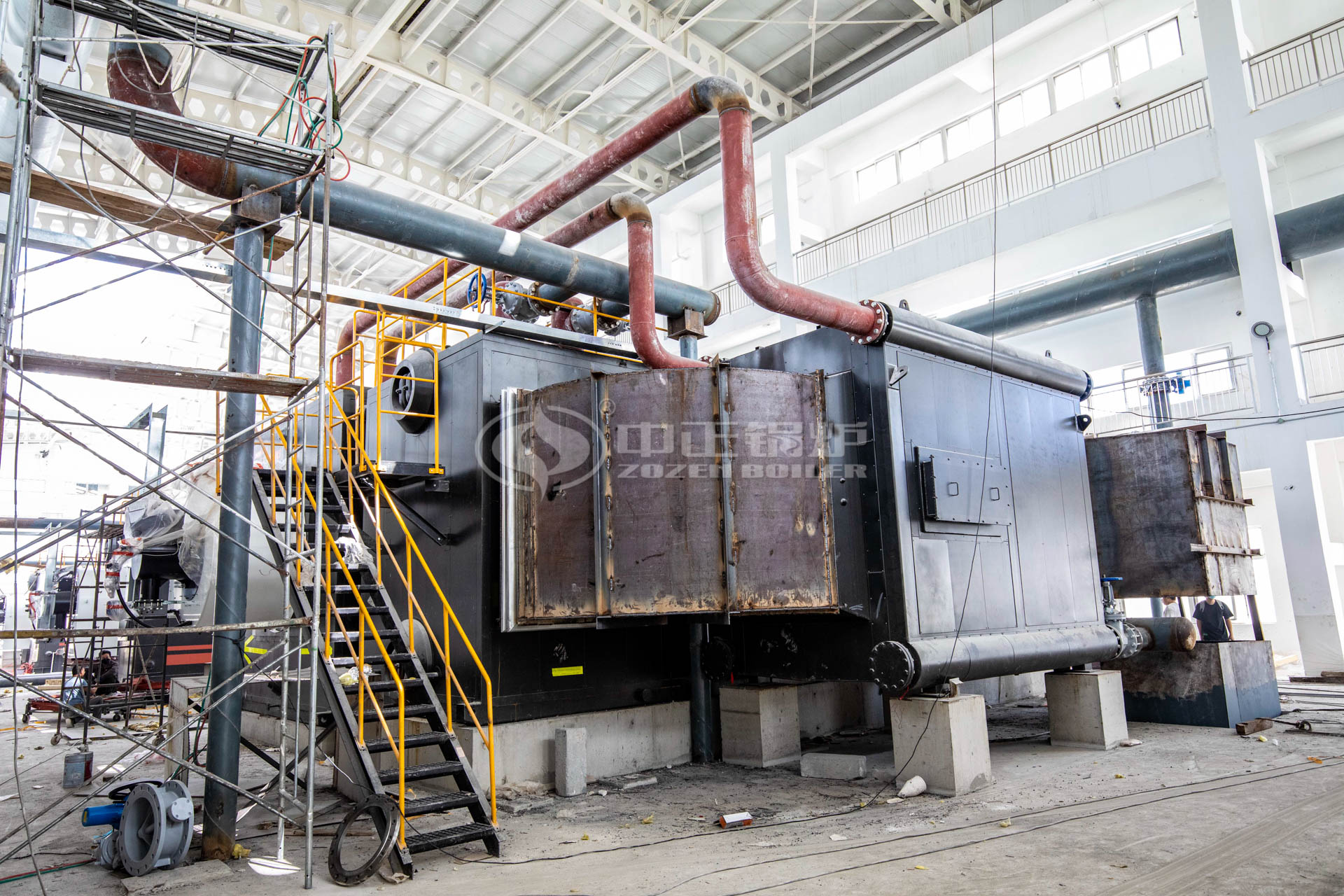 SZS boiler body is the structure of longitudinal double drums and D-type chamber combustion. The furnace is on right side and the convection tube bundle are on left side. The flexible supports of boiler are in the middle and two ends of the lower drum, and it can secure the whole boiler body to expand sideways. There are narrow-space membrane cooling tube walls on the four sides of furnace. The left membrane wall makes the furnace and the convection tube bundle separated. The rear of convection tube bundle is a kind of tube-decreasing and staggered structure, and the front is an aligned structure. The flue gas generated from furnace combustion flows from the rear outlet of furnace into the end of combustion chamber, convection tube bundle area, and then turns from the front-left of furnace to the spiral finned tube economizer, and next flows into smoke duct and chimney and finally exhausts into atmosphere.